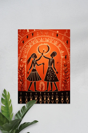 Warli Art #11 | Red | Wall Poster