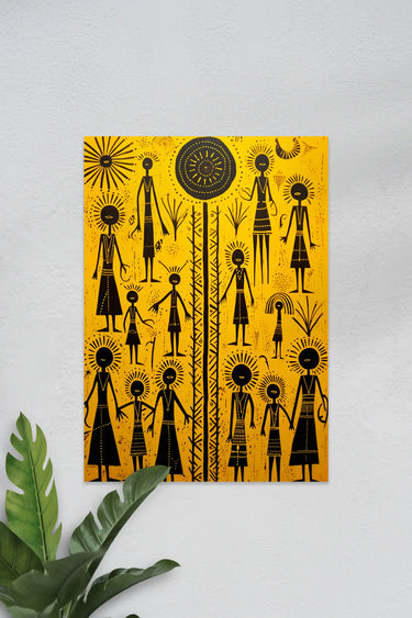 Warli Art #32 | Yellow | Wall Poster