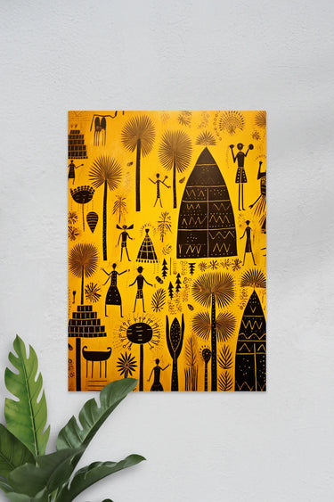 Warli Art #37 | Yellow | Wall Poster