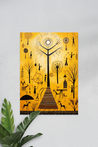 Warli Art #47 | Yellow | Wall Poster