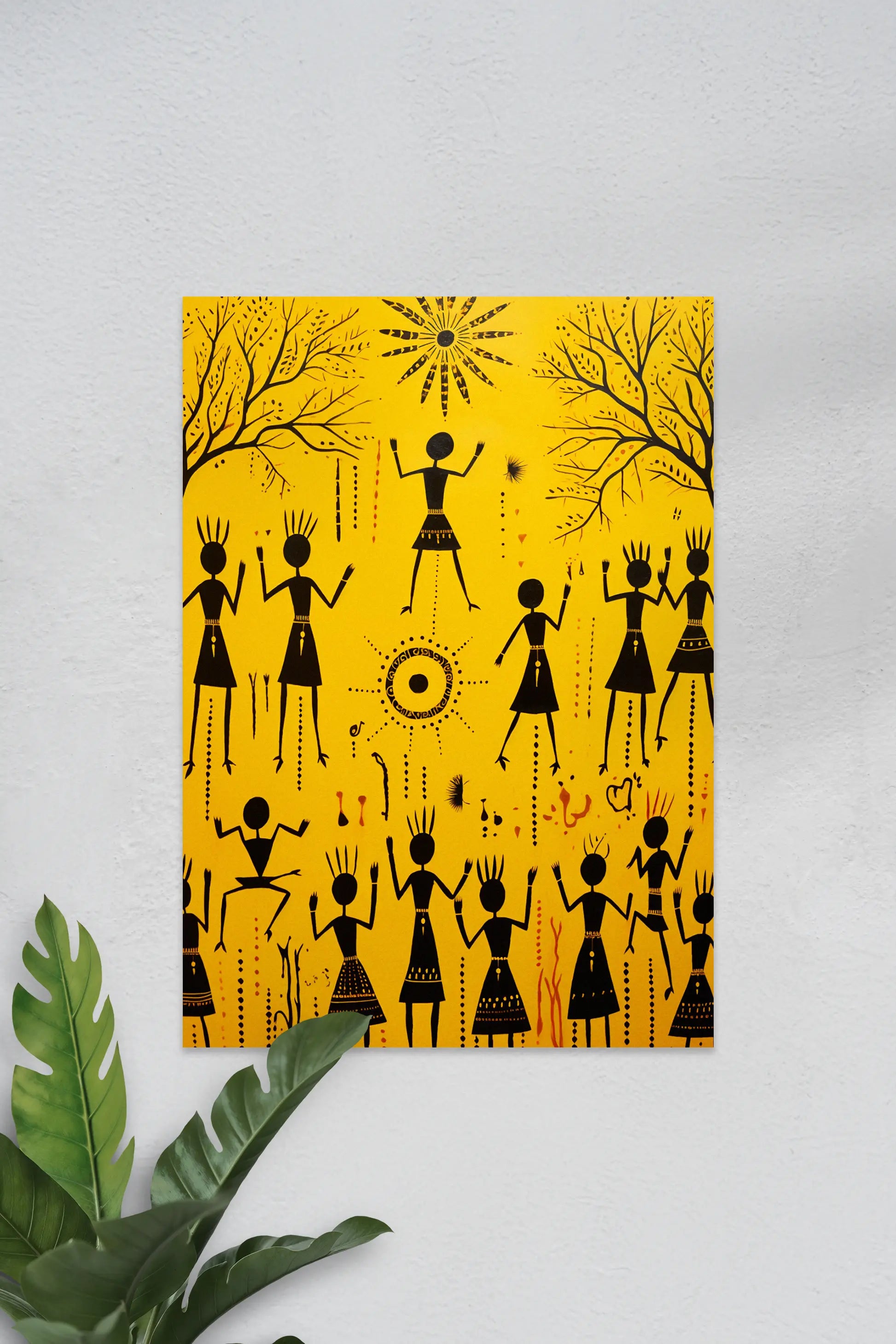 Warli Art #50 | Yellow | Wall poster